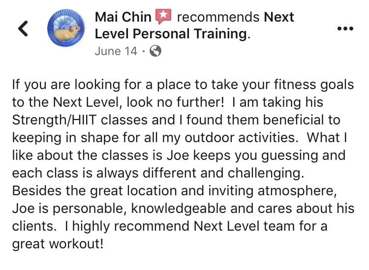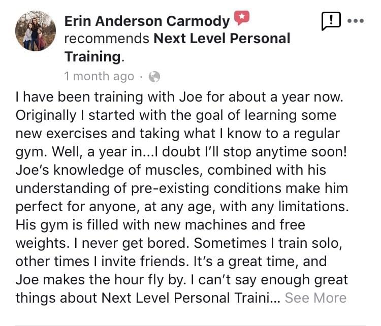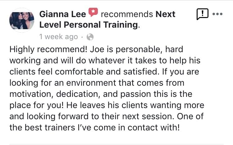 I've never been fit or really even healthy - but with Joe's help, that's starting to change! He is knowledgable and passionate and somehow knows how to motivate a couch potato like me to stay on track!I'm so grateful for finding this place; in only a month I have made considerable progress in regards to strength and endurance as well as in my weight loss goals.